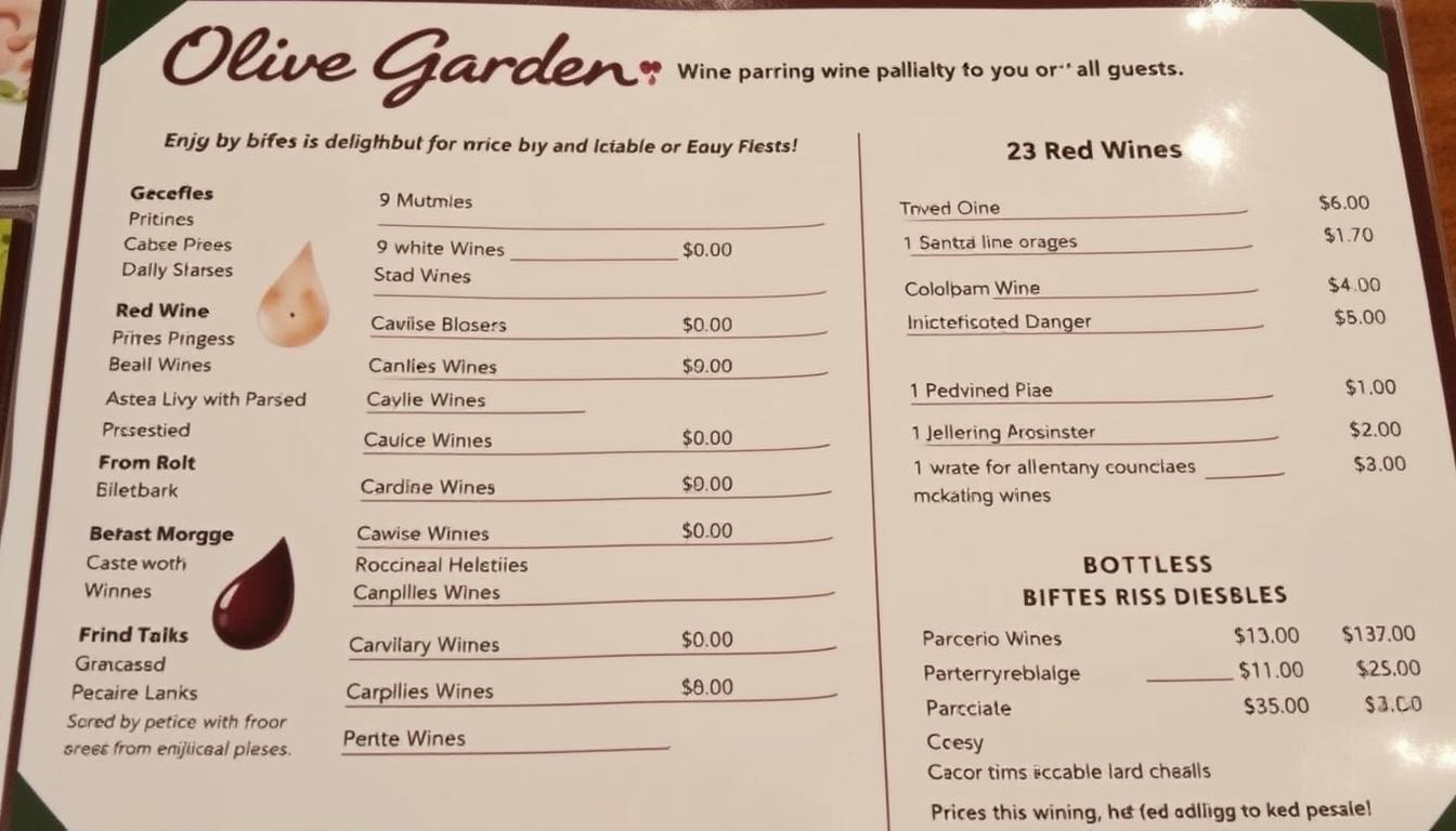 The Olive Garden wine list has an impressive mix of wines. It includes both bold reds and light whites to suit many tastes. With choices from Italy and around the world, these wines aim to make your meal special.